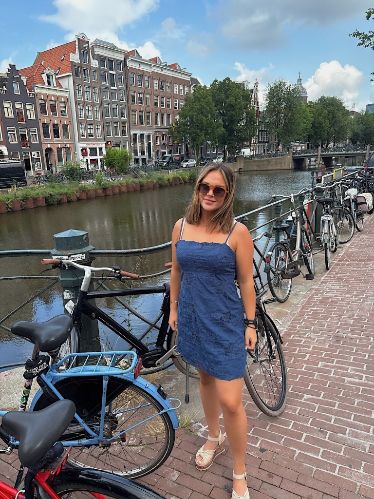 Amsterdam has always been one of those cities that feels straight out of a postcard – canals weaving through charming neighborhoods, bikes zipping past, and a vibrant mix of art, history, and culture around every corner. My husband and I recently spent two days here, and while it was a whirlwind trip, it turned out to be the perfect balance of sightseeing, relaxing, and soaking up the local vibes. I am so happy we were able to check this destination off of our list; it’s been on my radar since my study abroad program was canceled in 2020 due to COVID. Now, I can’t stop imagining the life I would have created there for 8 weeks as a 20 year old college student.